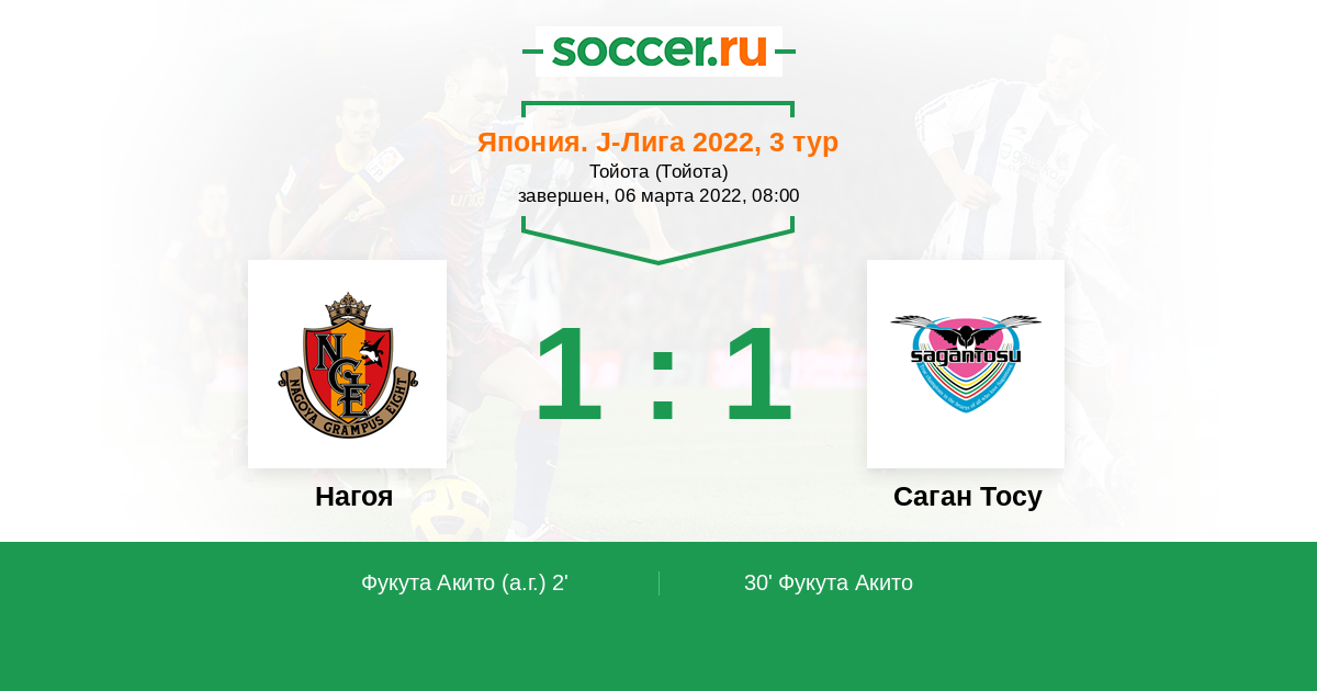 Протокол матча Нагоя против Саган Тосу