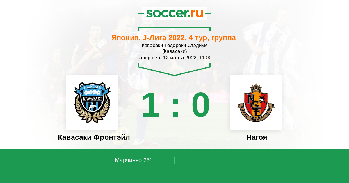 Протокол матча Кавасаки Фронтэйл против Нагоя