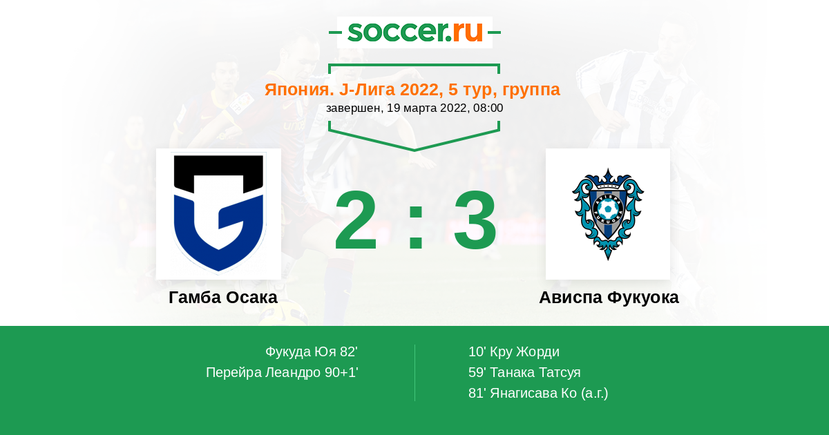 Протокол матча Гамба Осака против Ависпа Фукуока