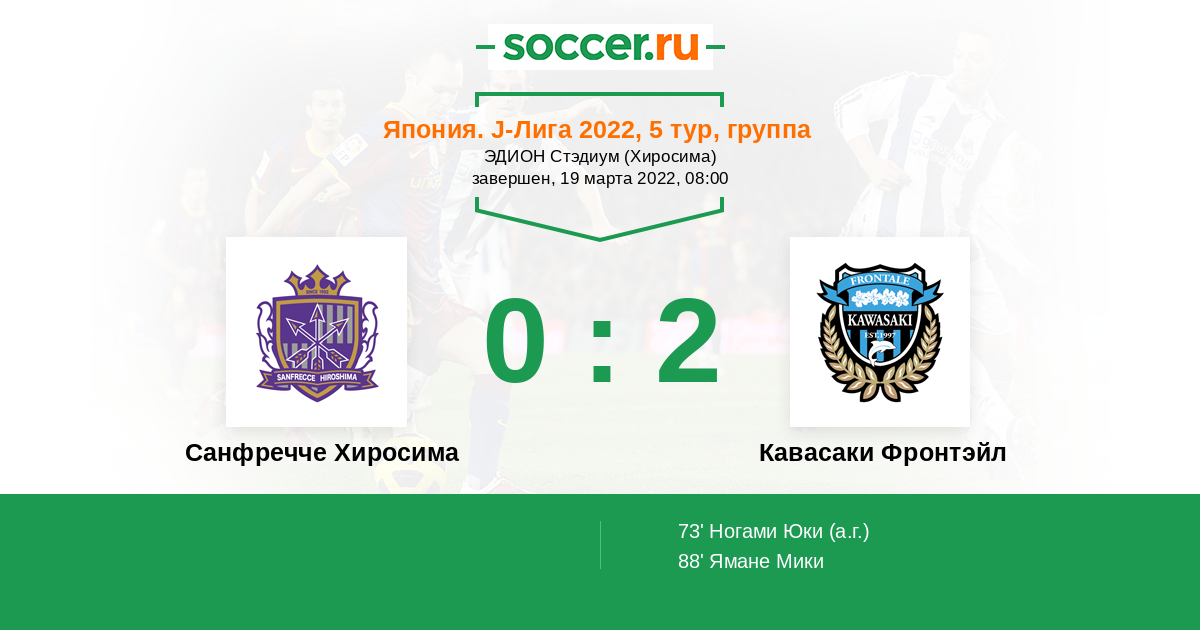 Протокол матча Санфречче Хиросима против Кавасаки Фронтэйл