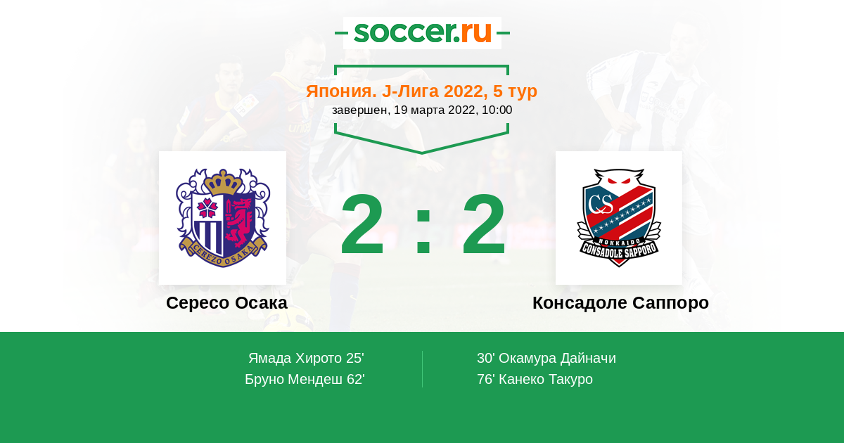 Протокол матча Сересо Осака против Консадоле Саппоро
