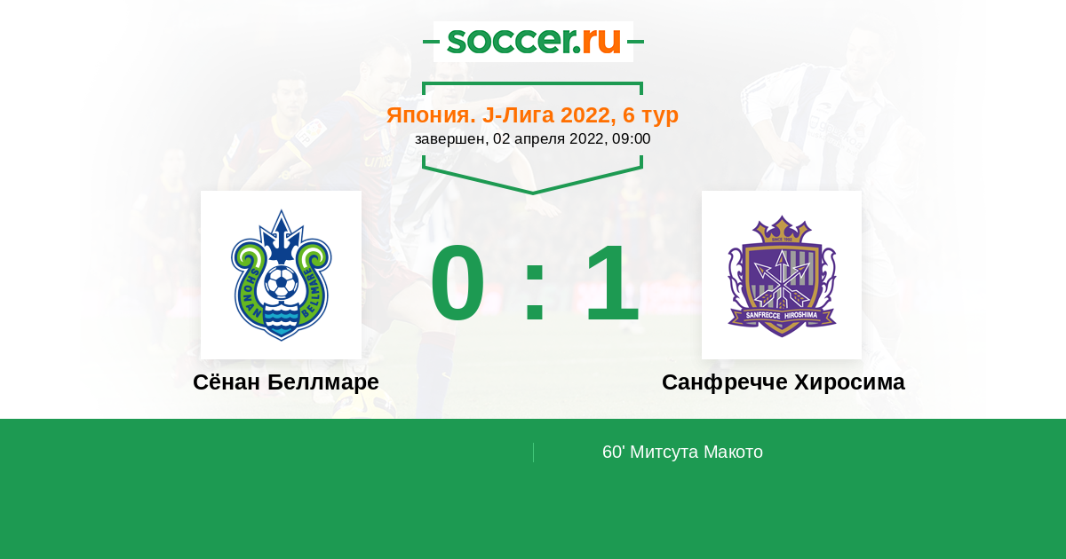 Протокол матча Сёнан Беллмаре против Санфречче Хиросима