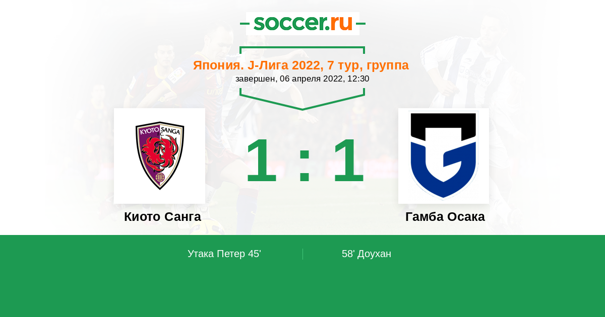 Протокол матча Киото Санга против Гамба Осака