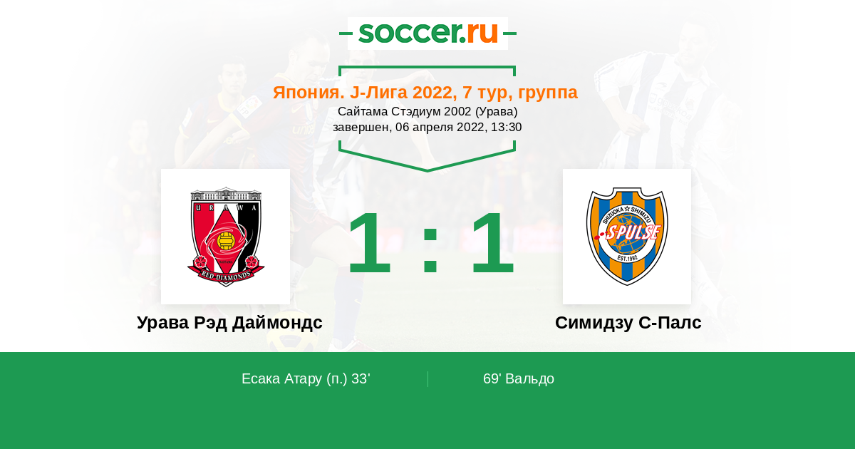 Протокол матча Урава Рэд Даймондс против Симидзу С-Палс