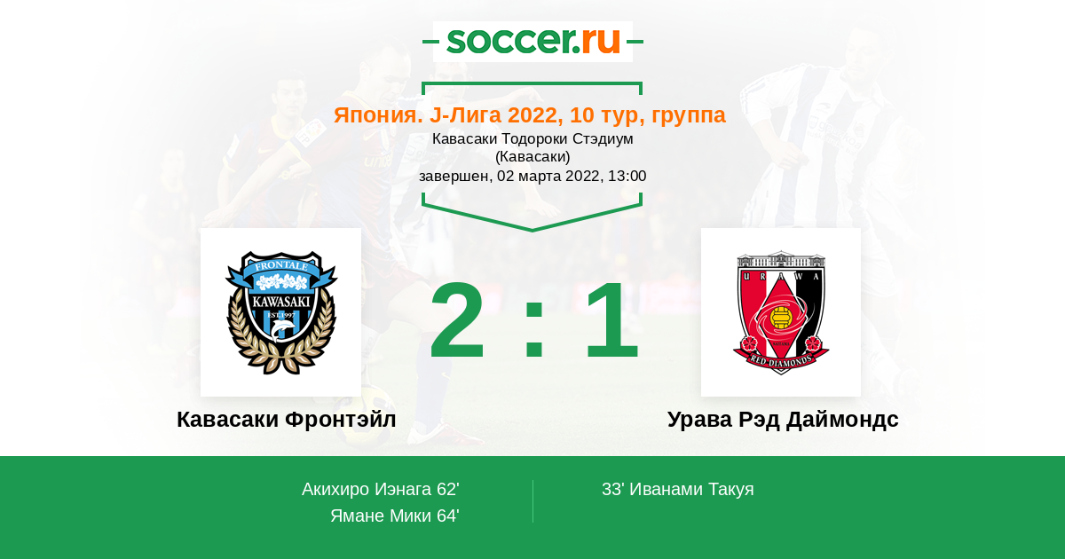 Протокол матча Кавасаки Фронтэйл против Урава Рэд Даймондс