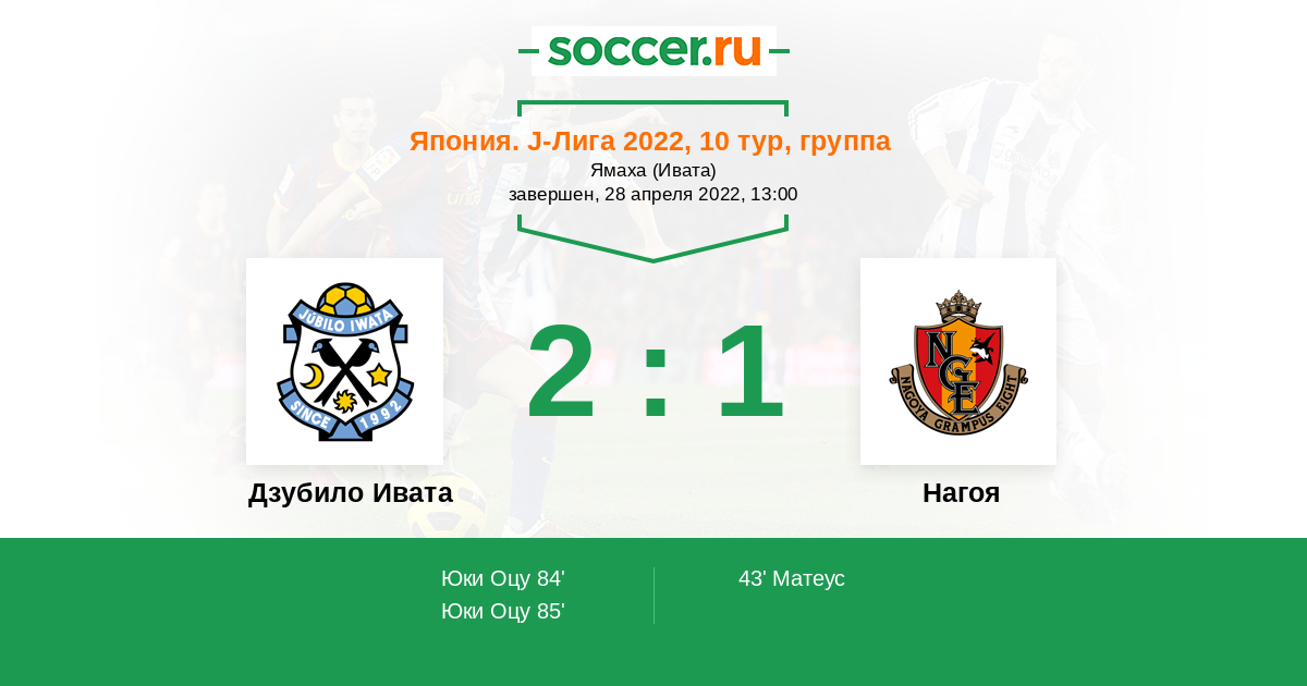 Протокол матча Дзубило Ивата против Нагоя