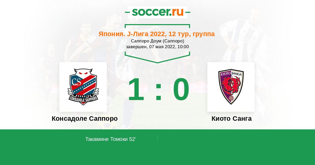 Протокол матча Консадоле Саппоро против Киото Санга