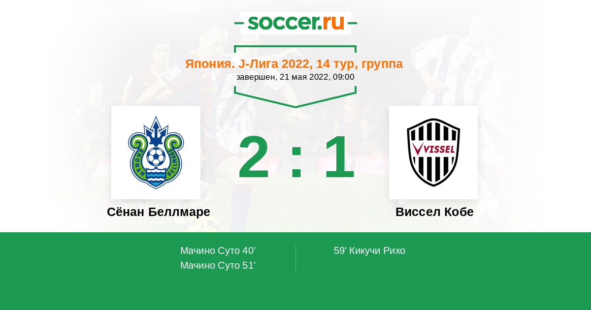 Протокол матча Сёнан Беллмаре против Виссел Кобе