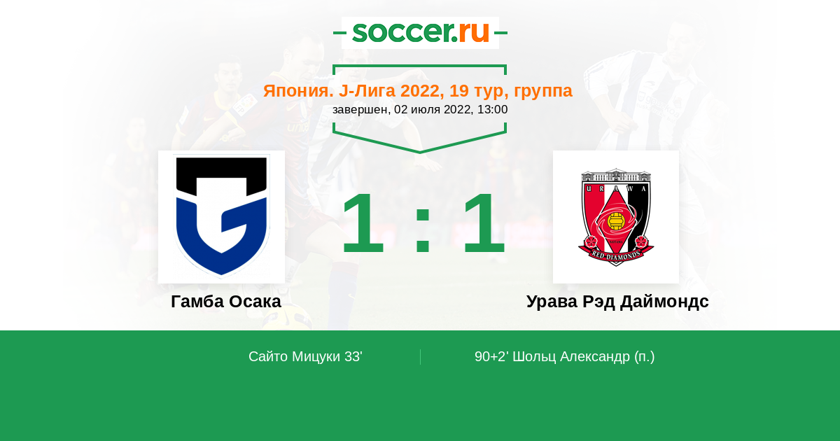 Протокол матча Гамба Осака против Урава Рэд Даймондс