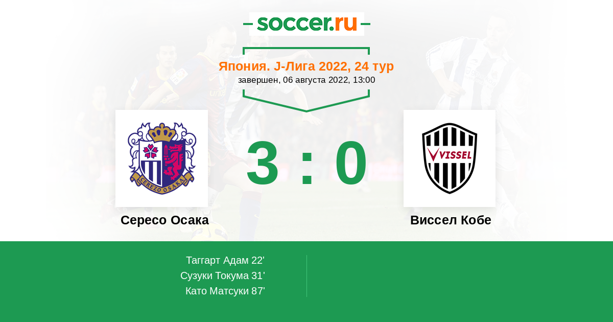 Протокол матча Сересо Осака против Виссел Кобе