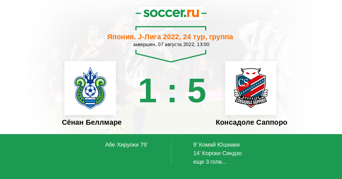 Протокол матча Сёнан Беллмаре против Консадоле Саппоро