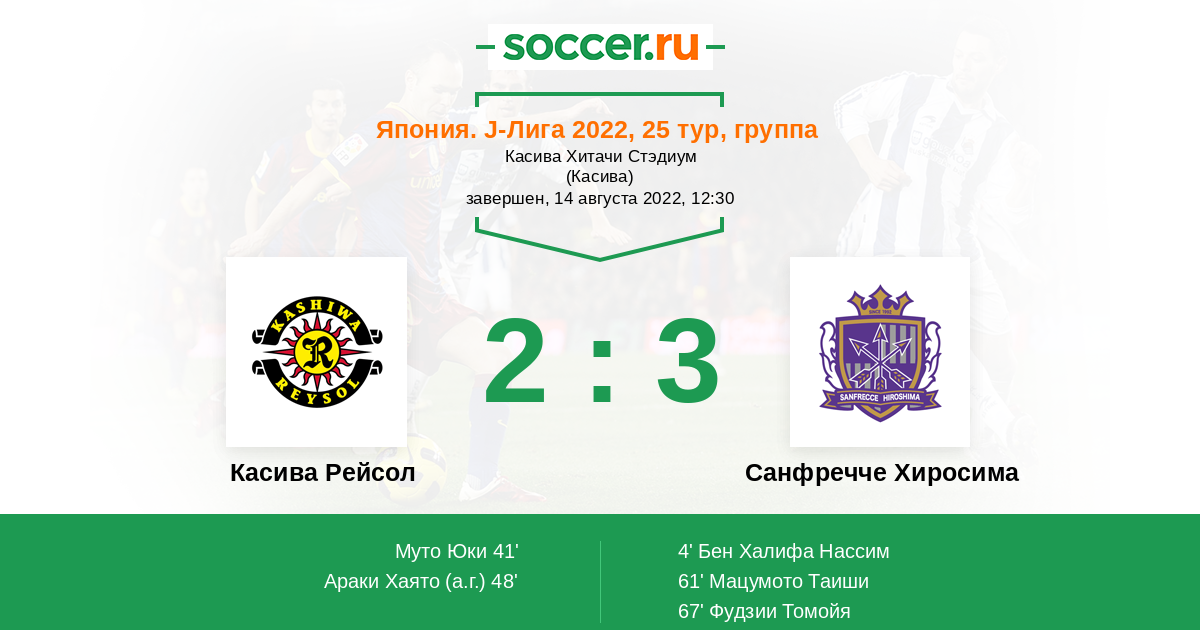 Протокол матча Касива Рейсол против Санфречче Хиросима