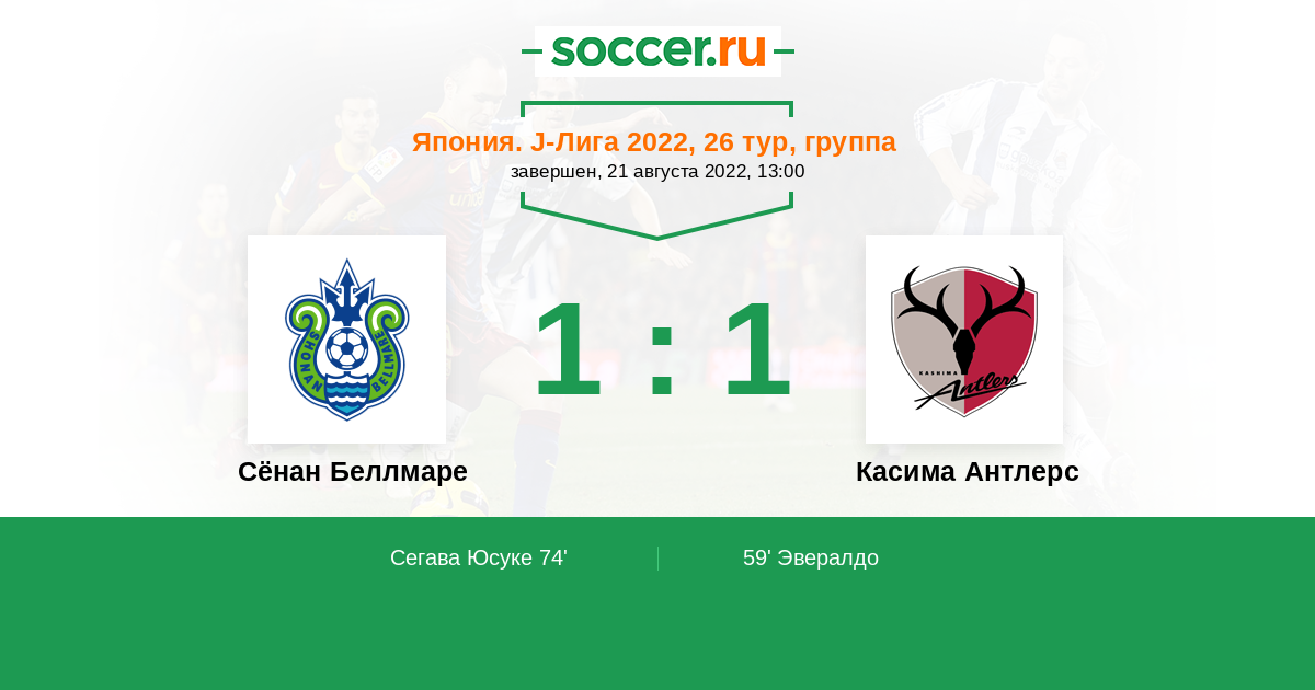 Протокол матча Сёнан Беллмаре против Касима Антлерс