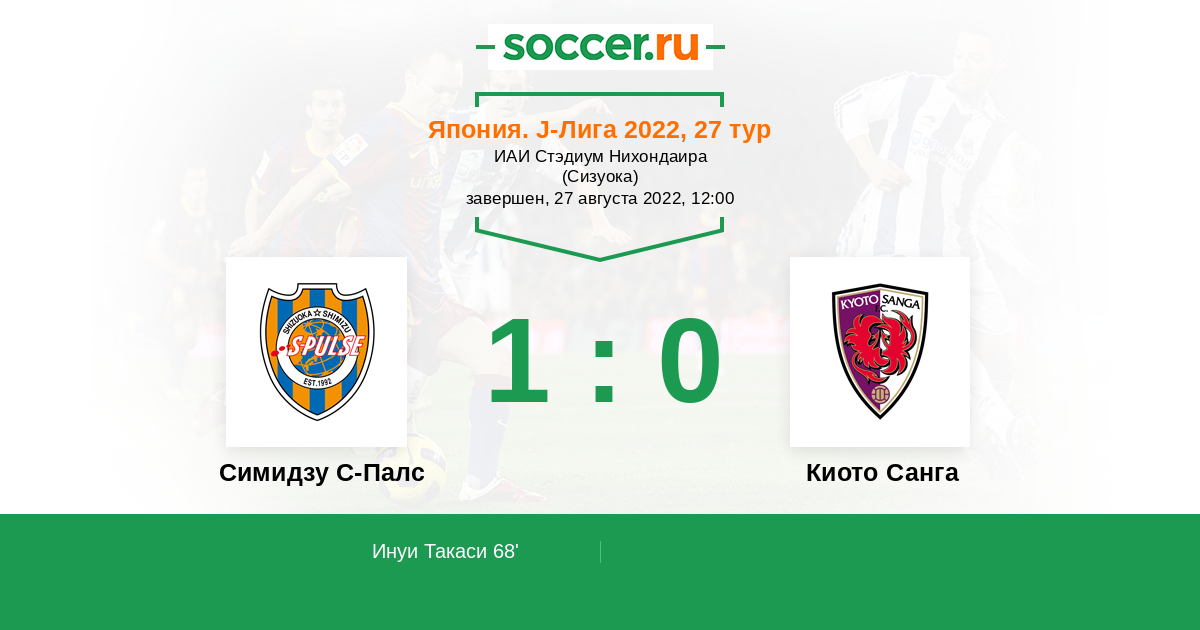 Протокол матча Симидзу С-Палс против Киото Санга