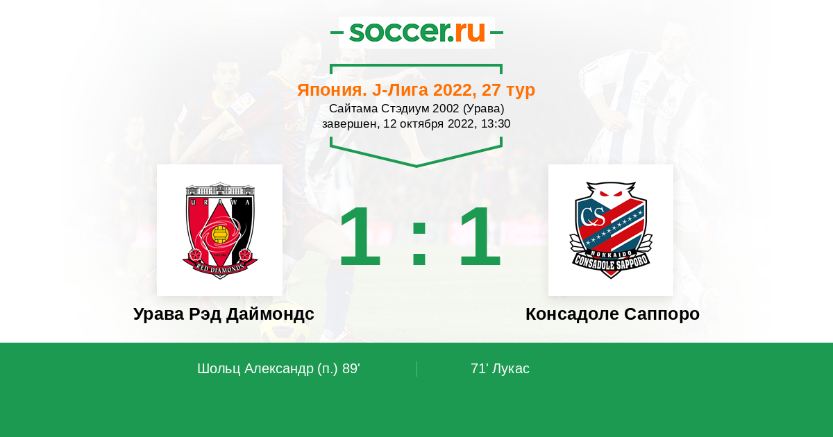 Протокол матча Урава Рэд Даймондс против Консадоле Саппоро