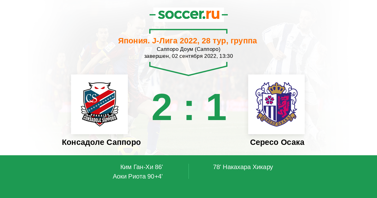 Протокол матча Консадоле Саппоро против Сересо Осака