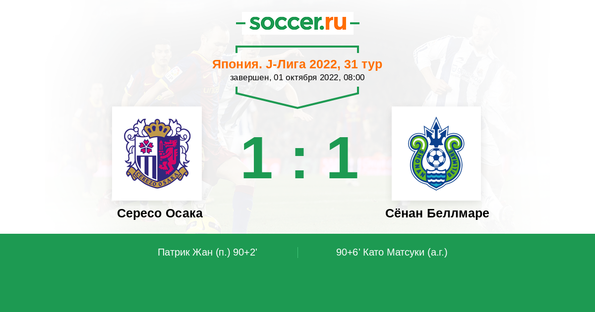 Протокол матча Сересо Осака против Сёнан Беллмаре