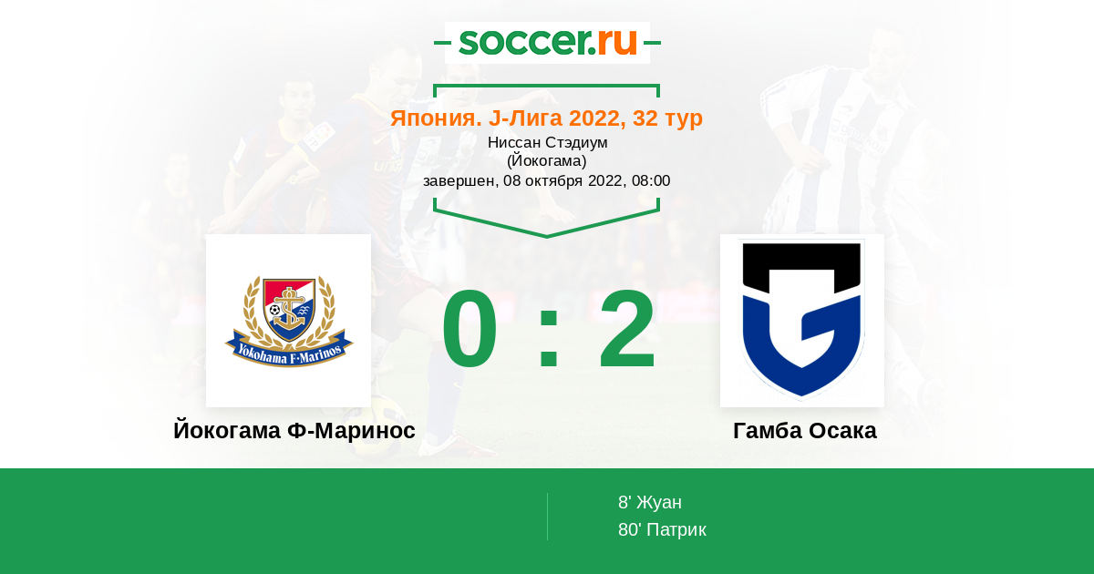Протокол матча Йокогама Ф-Маринос против Гамба Осака