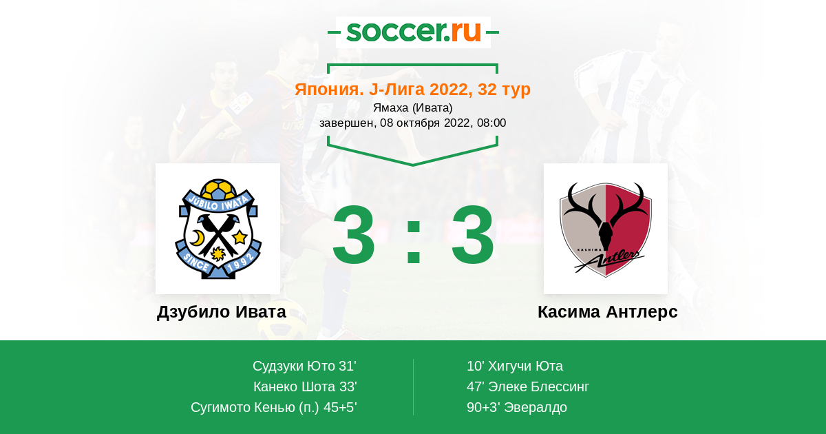 Протокол матча Дзубило Ивата против Касима Антлерс