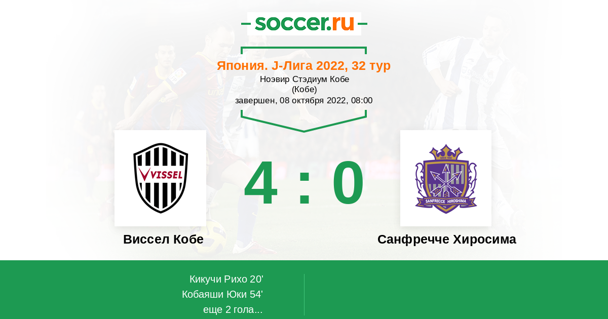 Протокол матча Виссел Кобе против Санфречче Хиросима