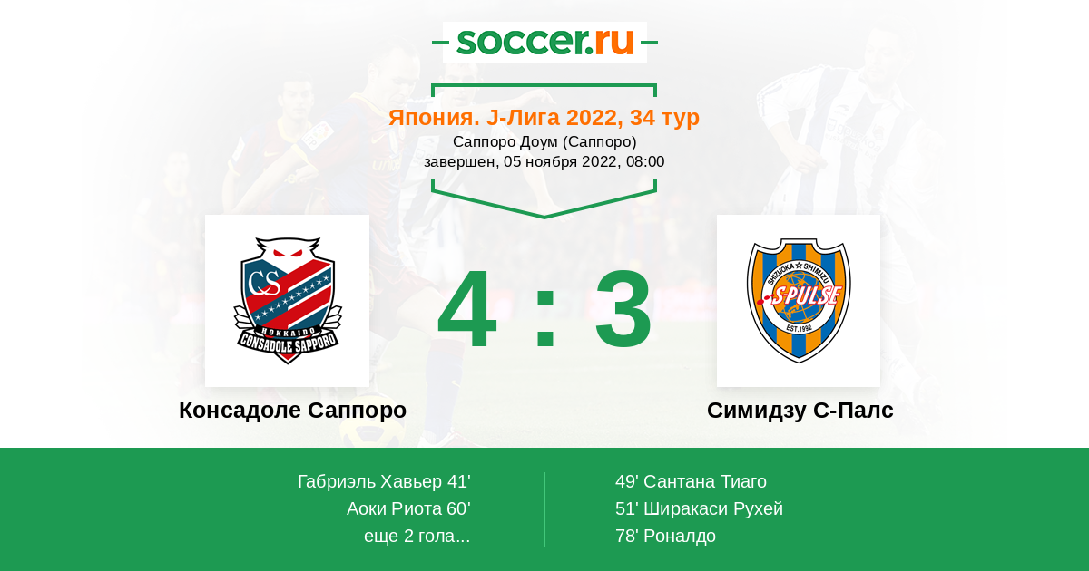 Протокол матча Консадоле Саппоро против Симидзу С-Палс