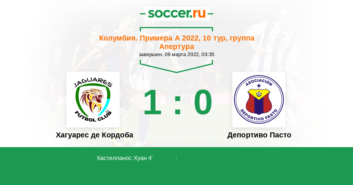 Протокол матча Хагуарес де Кордоба против Депортиво Пасто