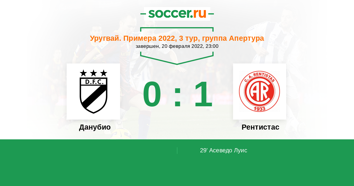 Протокол матча Данубио против Рентистас