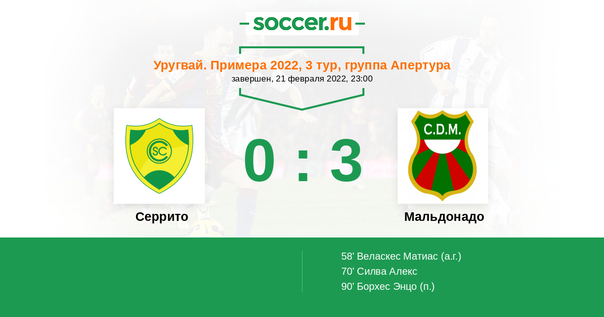 Протокол матча Серрито против Мальдонадо