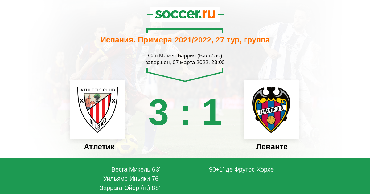 «Леванте» провалил сезон и пытается сохранить место в элитном первенстве. «Атлетик» не в лучшей форме, но имеет отличный состав и мотивацию. Считаю, что поддержка трибун и желание оправдаться за вылет из Кубка Испании поможет баскам добиться успеха.