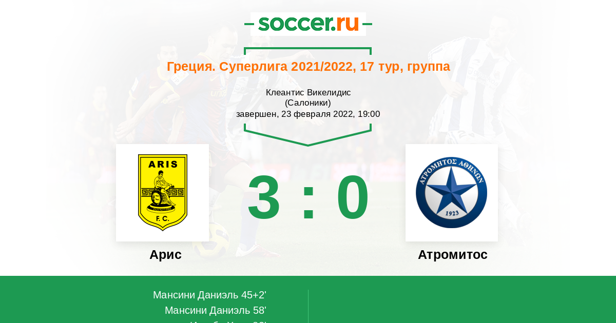 Протокол матча Арис против Атромитос