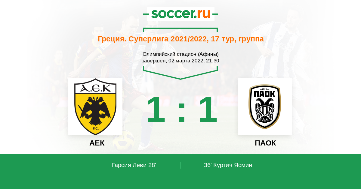 28' (1:0) Гарсия Ливай (9) (Манталос Петрос (20))