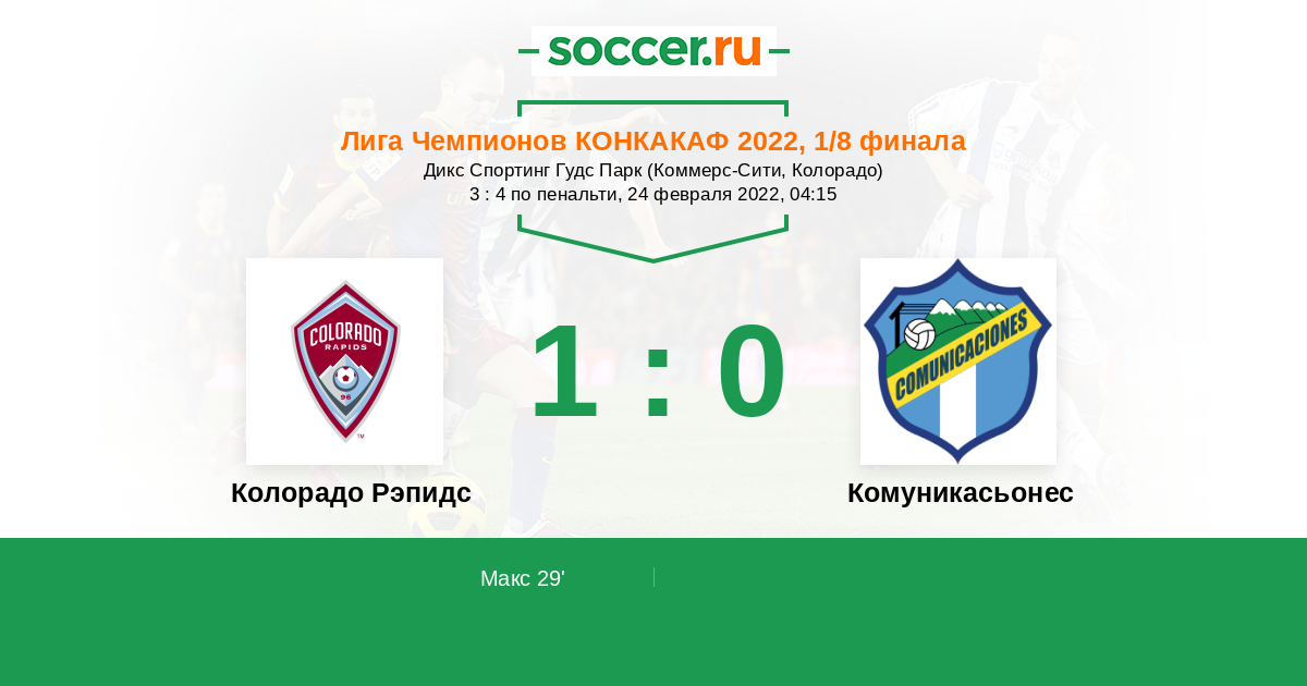 Протокол матча Колорадо Рэпидс против Комуникасьонес