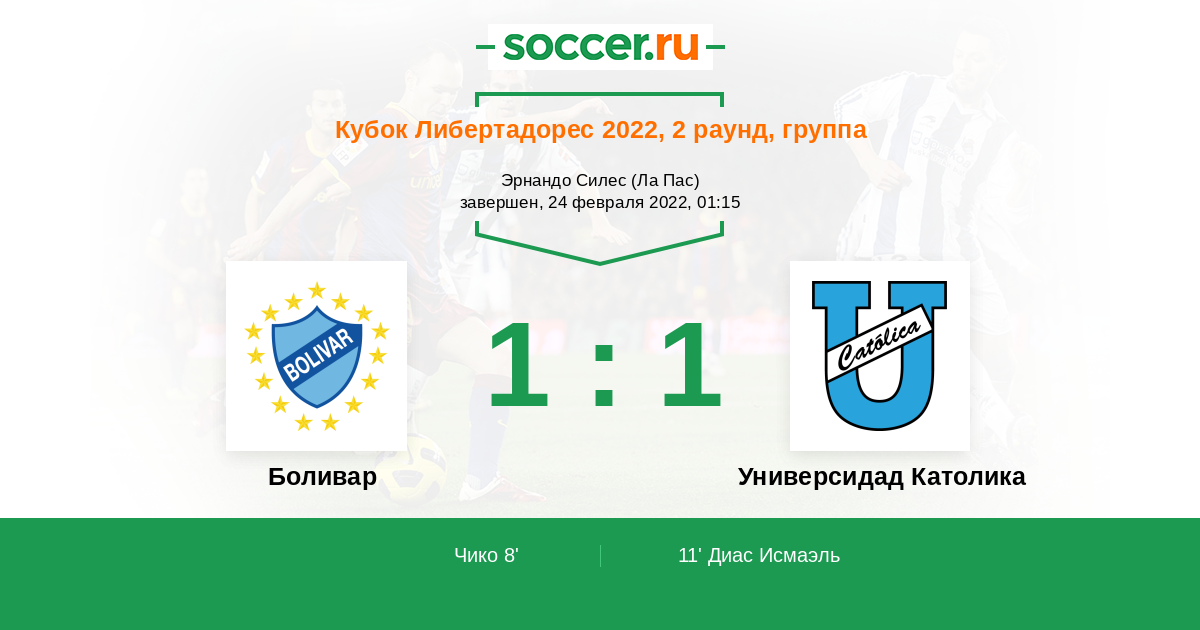Протокол матча Боливар против Универсидад Католика