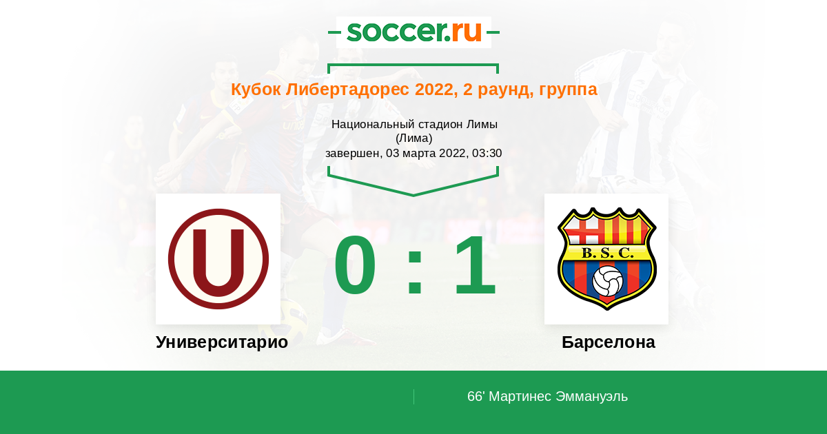 Протокол матча Университарио против Барселона