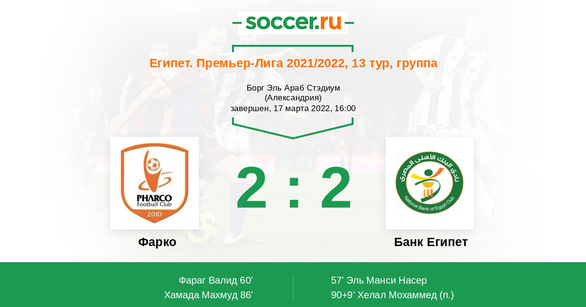 60' (1:1) Фараг Валид (32) (Хамада Махмуд (14))