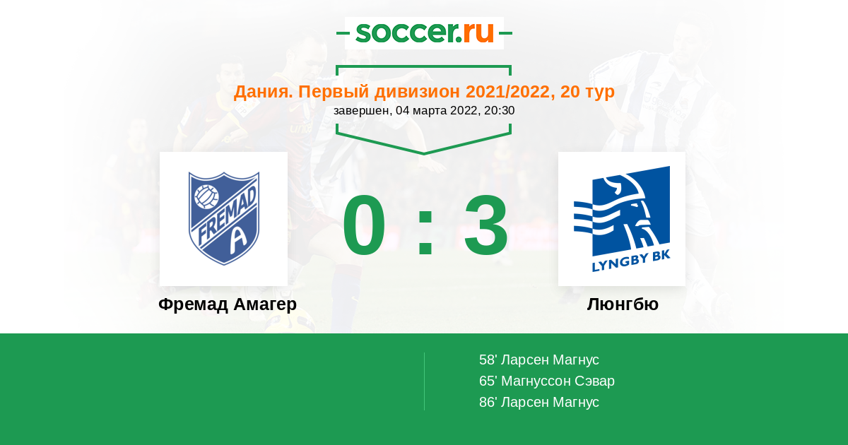 58' (0:1) Ларсен Магнус (11) (Соренсен Адам (17))