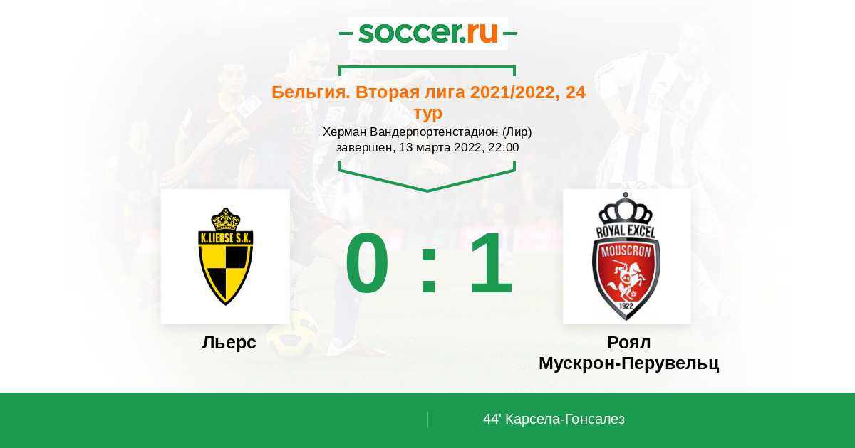 Протокол матча Льерс против Роял Мускрон-Перувельц