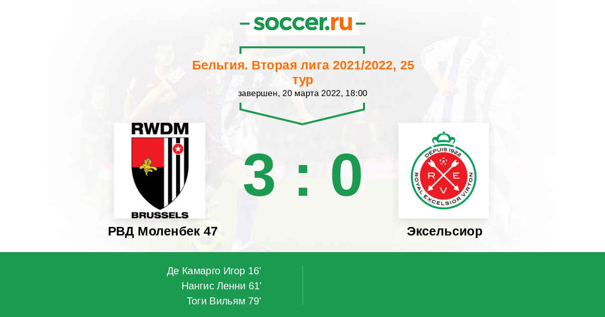 Протокол матча РВД Моленбек 47 против Эксельсиор