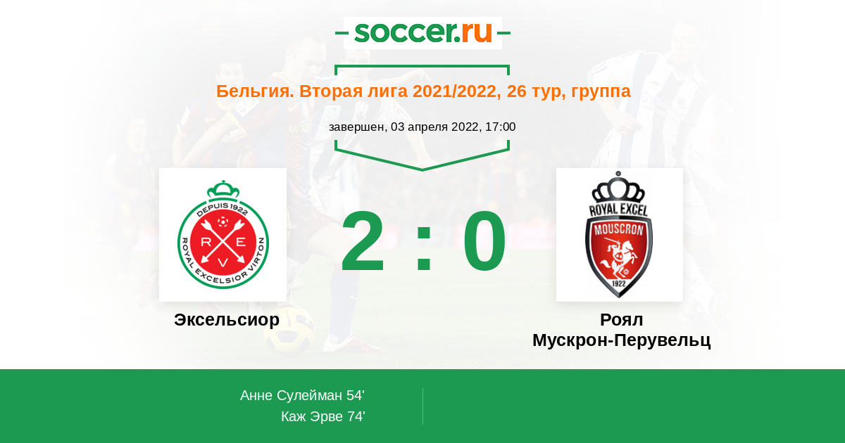 Протокол матча Эксельсиор против Роял Мускрон-Перувельц
