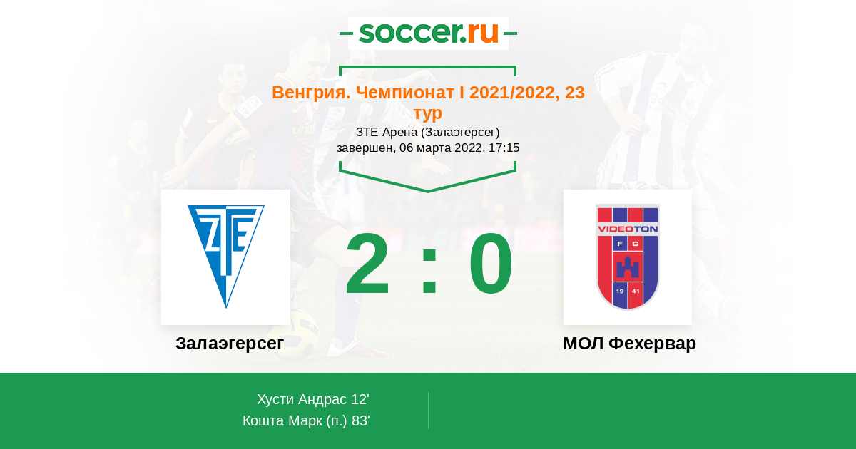 Протокол матча Залаэгерсег против МОЛ Фехервар