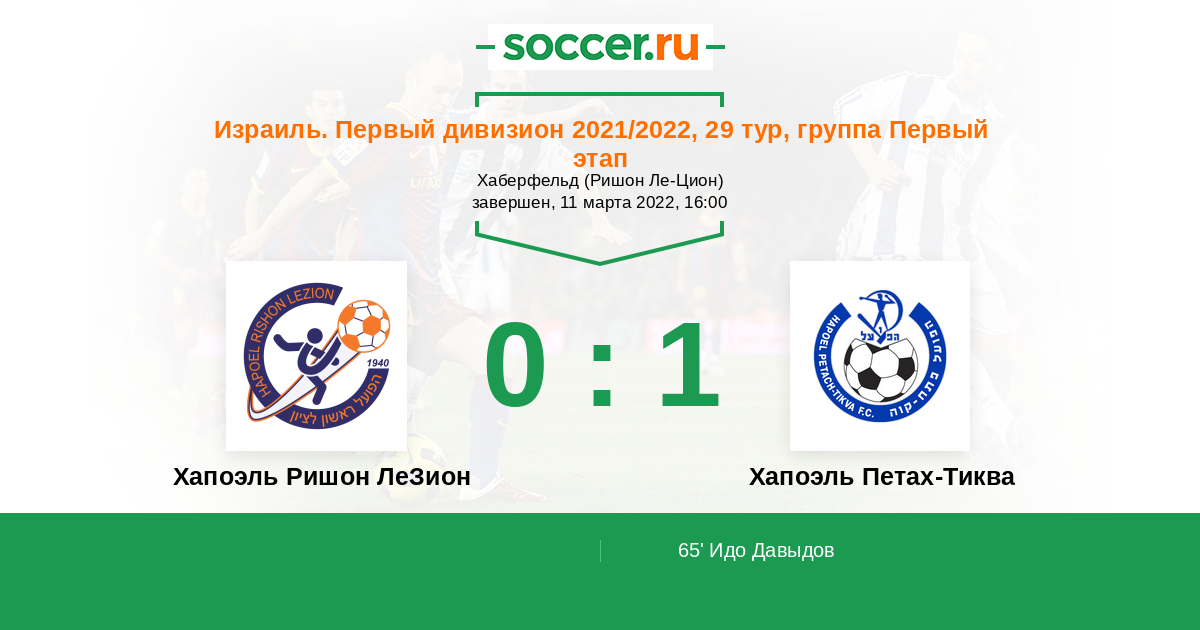 Протокол матча Хапоэль Ришон ЛеЗион против Хапоэль Петах-Тиква