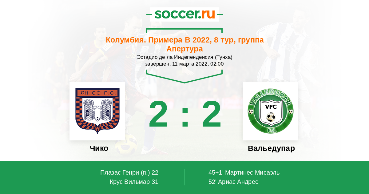 Протокол матча Чико против Вальедупар