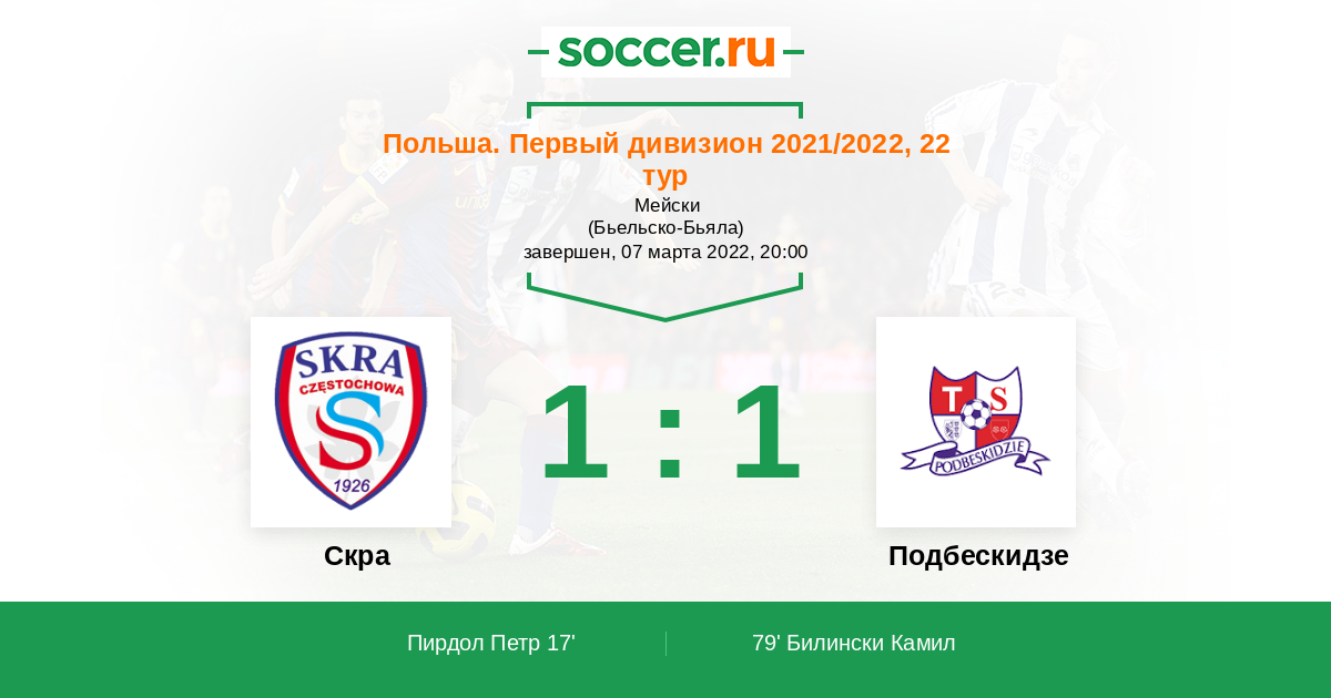 Протокол матча Скра против Подбескидзе