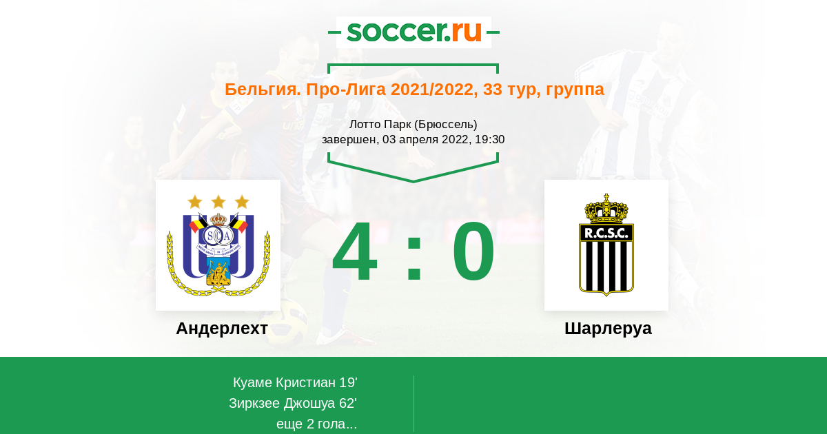 Протокол матча Андерлехт против Шарлеруа