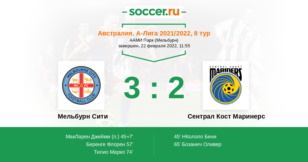 Протокол матча Мельбурн Сити против Сентрал Кост Маринерс