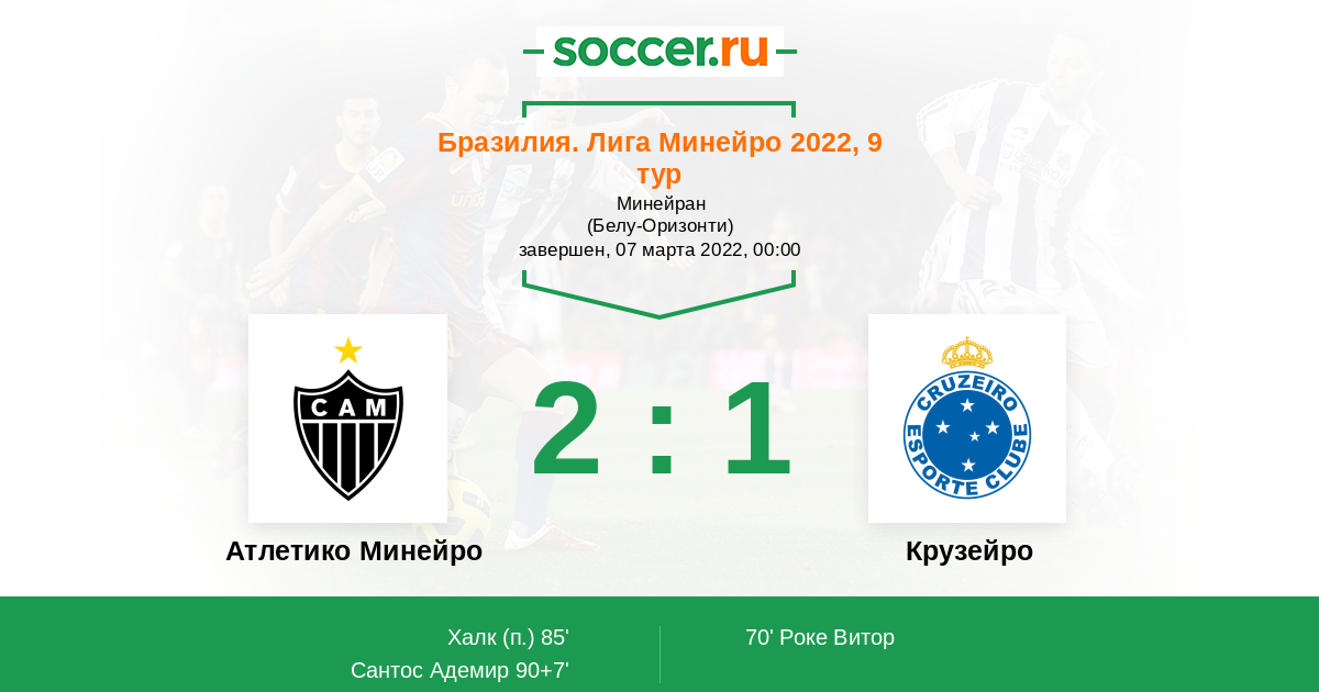 Протокол матча Атлетико Минейро против Крузейро
