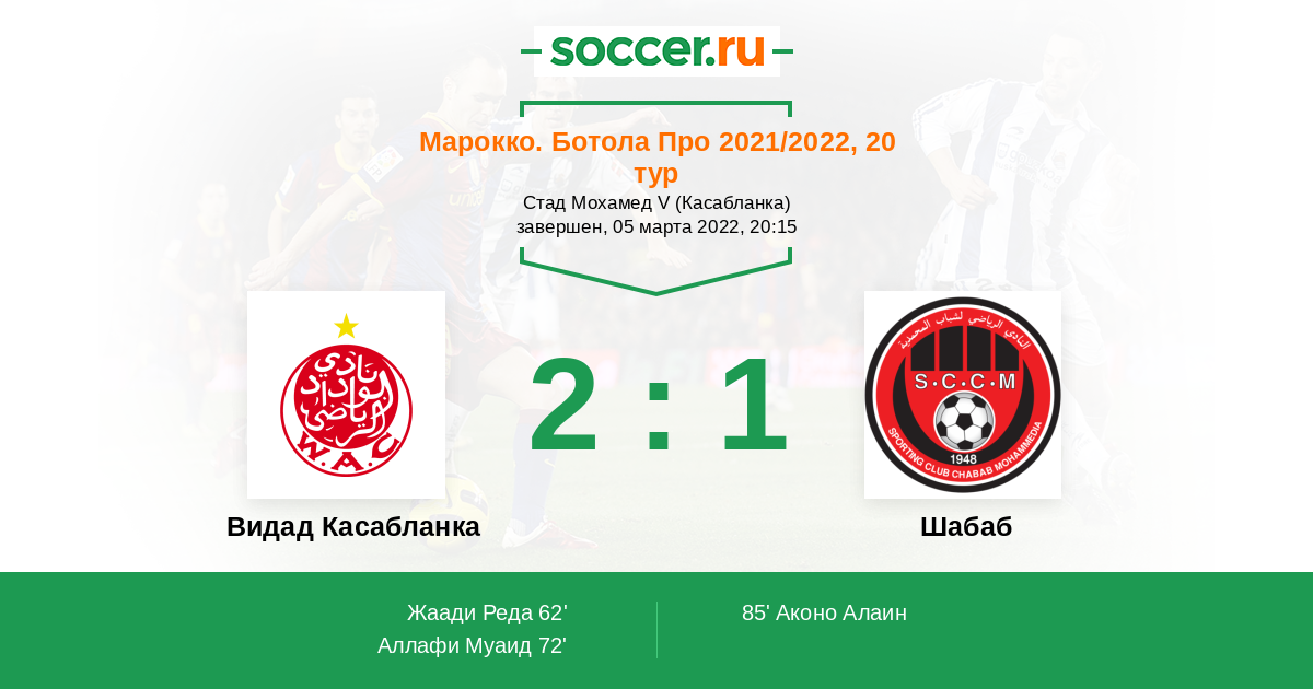 Протокол матча Видад Касабланка против Шабаб