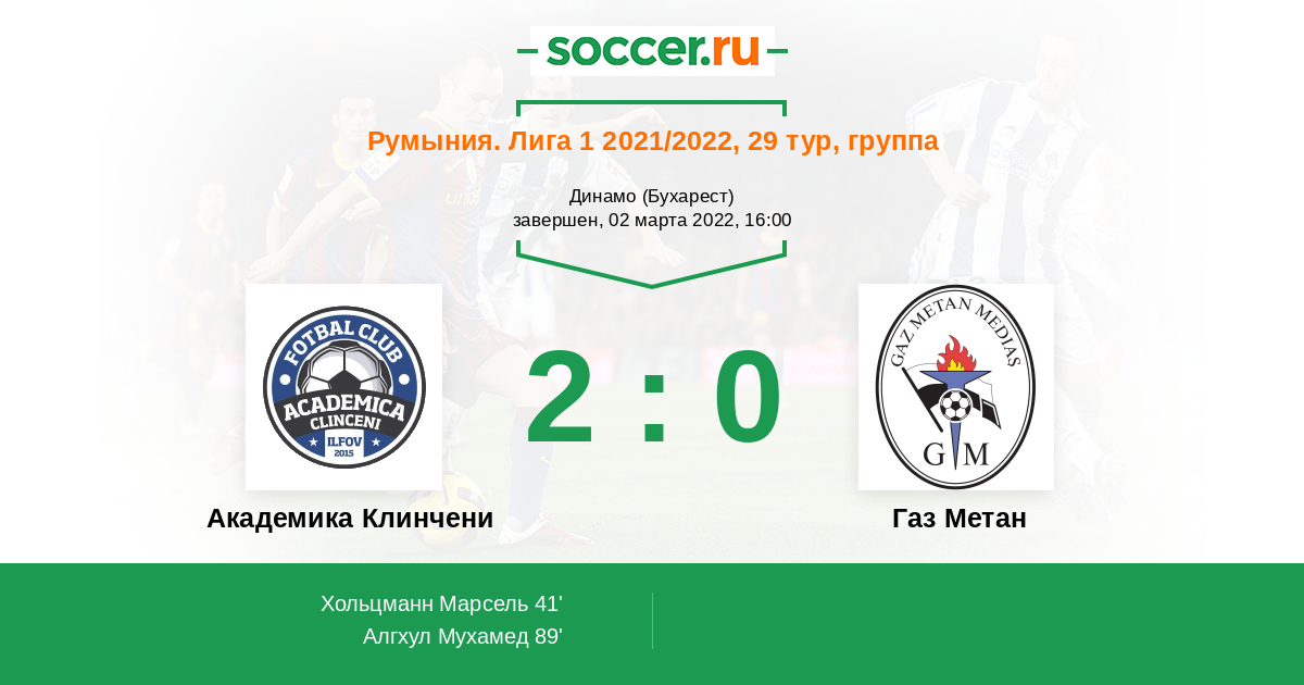 Протокол матча Академика Клинчени против Газ Метан