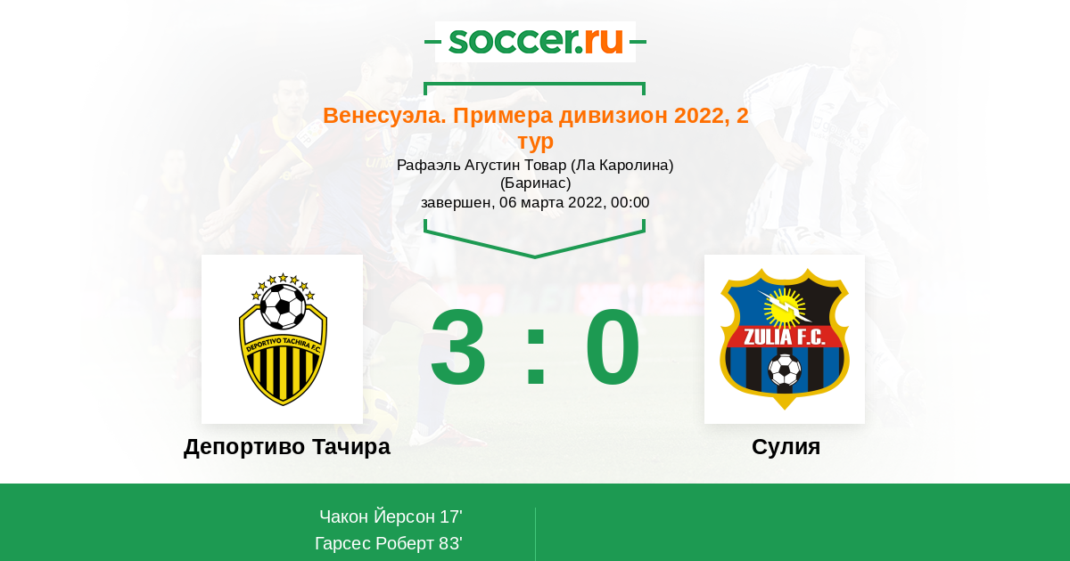 Протокол матча Депортиво Тачира против Сулия