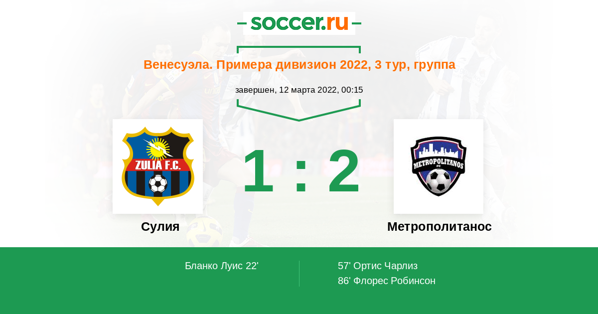 Протокол матча Сулия против Метрополитанос